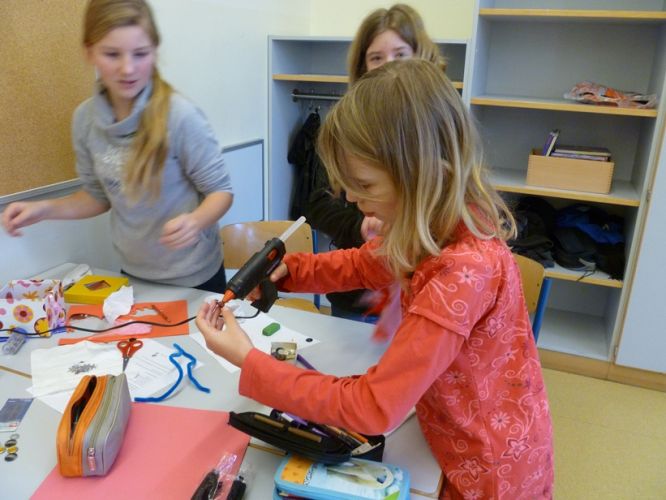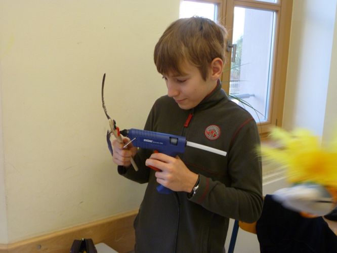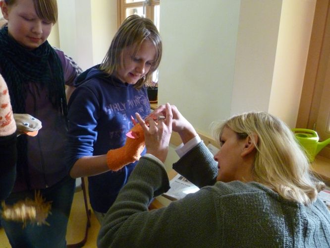 In Gruppenarbeit wurden die Fabeln analysiert, zu einem dramatischen Text umgearbeitet und die Akteure wurden gebastelt. So entstanden Löwen, Ameisen, Grillen, Störche oder Füchse als Handpuppen.