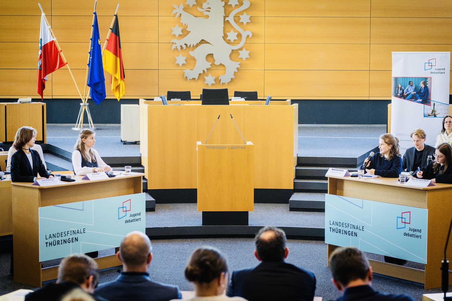 Auch in diesem Jahr wurde das Landesfinale des bundesweiten Wettbewerbs „Jugend debattiert“ im Plenarsaal des Thüringer Landtag in Erfurt ausgetragen. Für die Kooperative Gesamtschule „Herzog Ernst“ war die Teilnahme an diesem besonderen Ort gelebter Demokratie erneut ein Höhepunkt im Schuljahr.
