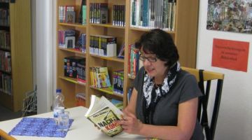 Am 04.10.2011 besuchte der Deutschkurs der Klasse 7a und 7b mit Frau Stein die Schulbibliothek. Dort erwartete uns Frau Brommer und die Stadtschreiberin von Gotha, Agnes Hammer. Diese stellte den